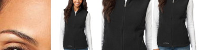 Ward off early morning chills by insulating your core with this soft, cozy vest. Princess seams, reverse coil dyed-to-match zippers, front zippered pockets with tricot lining, binding at armholes and an open hem. Contrast Eddie Bauer logo embroidered on hem. Made of 12-ounce, 100% polyester fleece which incorporates Low Impact Technology™ for enhanced softness and performance.